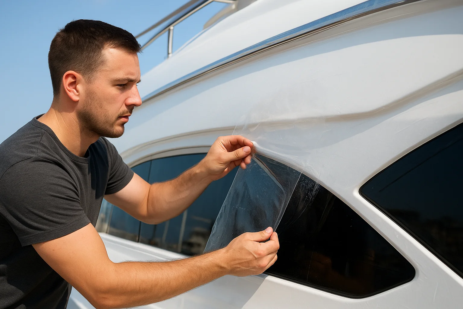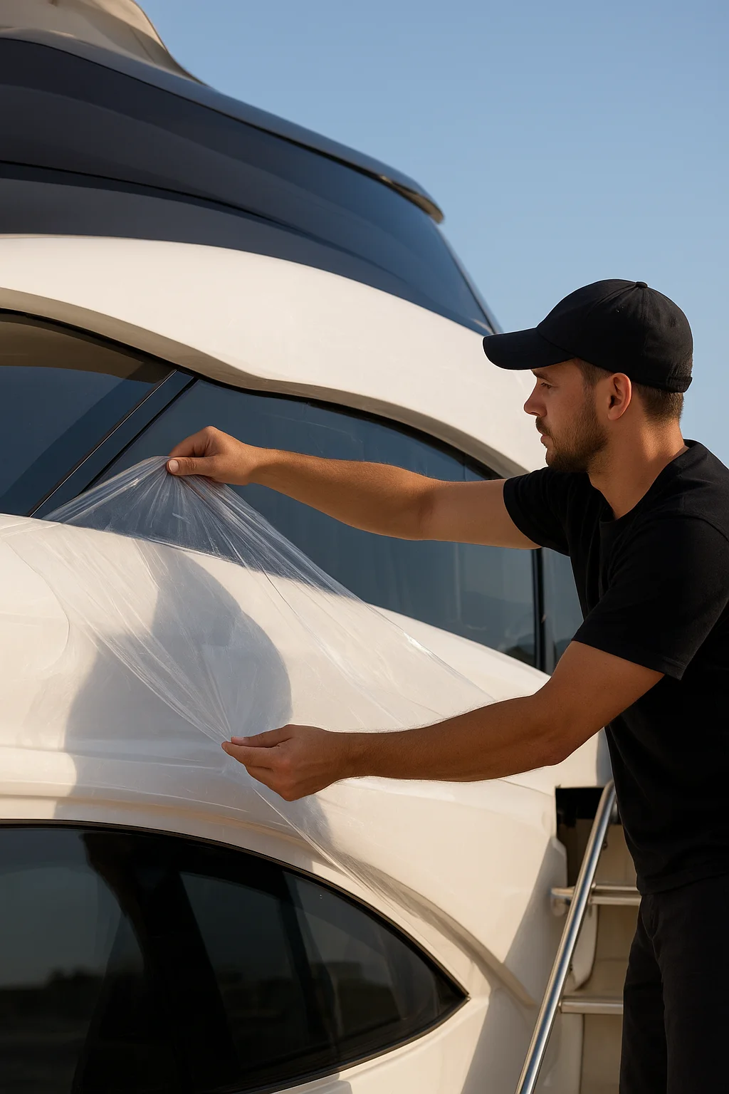 Our premium marine paint protection film (PPF) acts as an invisible shield against scratches, fading, and harsh marine elements